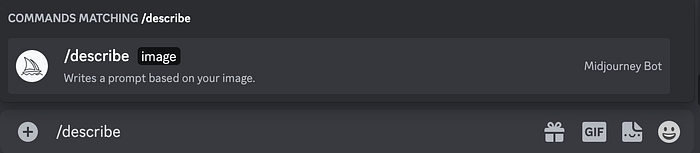 Now let's go to Midjourney and type in the new /describe command.